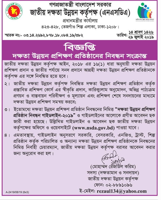 প্রশিক্ষণ প্রতিষ্ঠান নিবন্ধন সংক্রান্ত গাইডলাইন ও ফরম